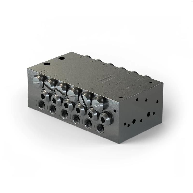 •Aantal uitlaten: 12 •Aansluiting inlaat: 1/8″G •Maximale werkdruk: 350 Bar •Aansluiting uitlaat: M10 x 1 Gebruik uitsluitend speciale SSV nippels met terugslagklep •Smeermiddel: Olie en vet tot NGLI 2 •Materiaal: Staal zwart verzinkt •Temperatuur: -25 tot 70ºC