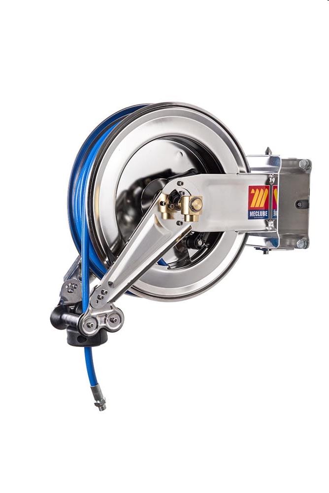 – zwenkbare muursteun – voorzien van 15 mtr. blauwe polyurethaan slang ø 8×12 slang, 20 bar – messing vernickelde aansluitingen – messingvernickelde 90° swivel – viton pakkingen. Model SX-400.